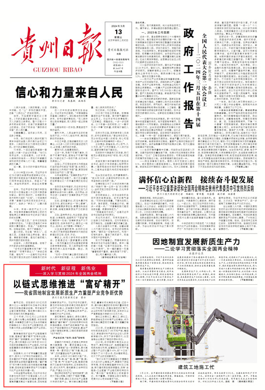 ??緊扣高端化、智能化、綠色化要求,貴州深入學習貫徹全國兩會精神,高質量推進“富礦精開”,加快實現原材料向終端消費品、低端產品向高端產品、粗加工產品向精深加工產品轉變,聚合產業鏈價值鏈創新鏈,以鏈式思維把資源“吃干榨盡”。